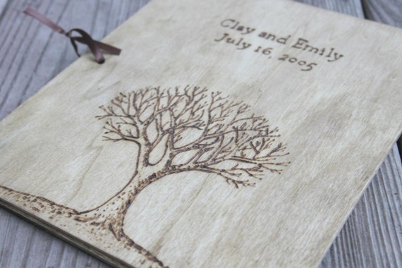 Rustic Wedding Guest Book - Wood Guest Book - Engr...