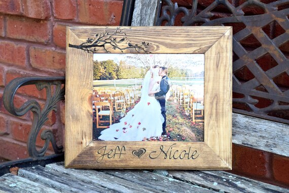 Love Birds Wooden Frame - Picture Frame - Wedding Gift - Personalized Gift - Customized Wooden Picture Frame - Christmas Gift Laser Engraved by CountryBarnBabe