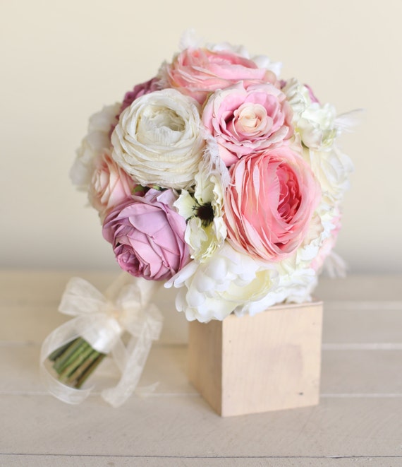 Silk Bridal Bouquet Pink Roses Baby's Breath Rustic Chic Wedding NEW 2014 Design by Morgann Hill Designs by braggingbags