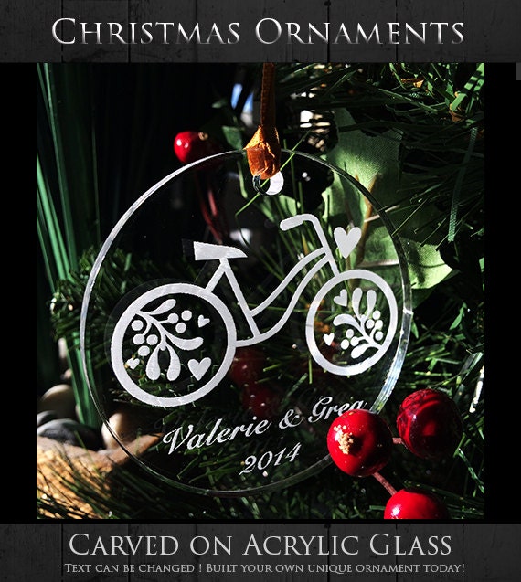 Bike Ornament - Newlyweds - Just Married Ornament - Personalized Acrylic Anniversary Ornament - Custom Text - SKU#4B by WeddingTreePrints