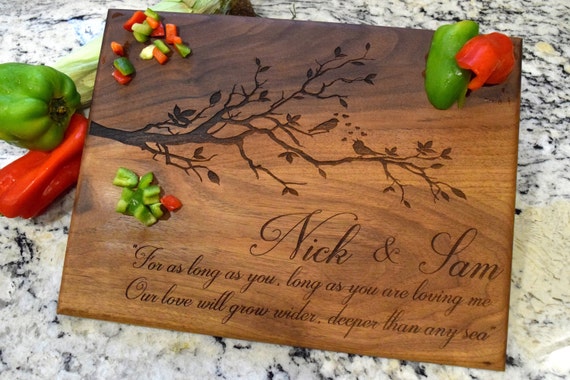 Cutting Board Love Birds Cutting Board - Laser Engraved Cutting Board - Walnut Cutting Board - Personalied Cutting Board - Anniversary Gift by CountryBarnBabe
