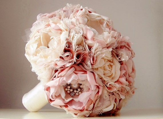 Fabric Wedding Bouquet, Brooch Bouquet, Vintage Style Bridal Bouquet, Handmade Fabric Bouquet, Weddings, Dusty Rose Pink by bouquets4love