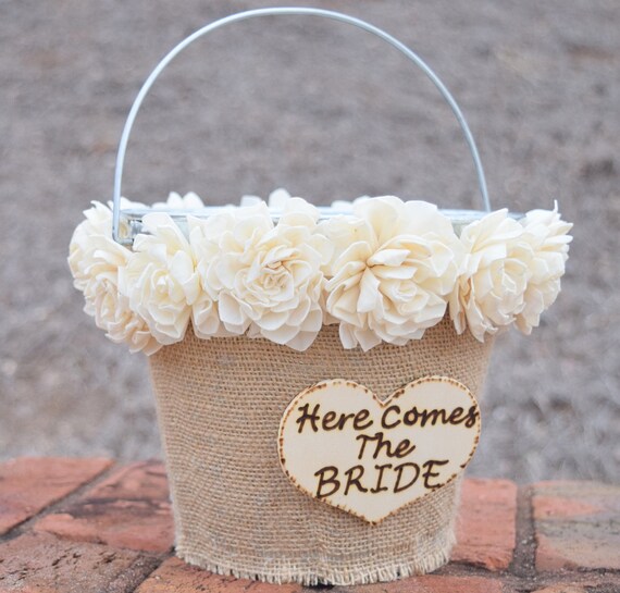 Flower Girl Basket - Flower Girl Pail - Rustic Wedding - Shabby Chic Wedding Decor - Rustic Flower Girl Basket - Rustic Flower Girl by CountryBarnBabe
