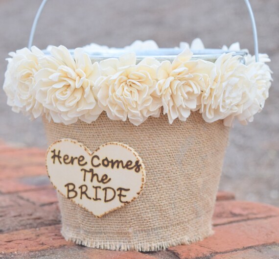Flower Girl Basket - Flower Girl Pail - Rustic Wedding - Shabby Chic Wedding Decor - Rustic Flower Girl Basket - Rustic Flower Girl by CountryBarnBabe