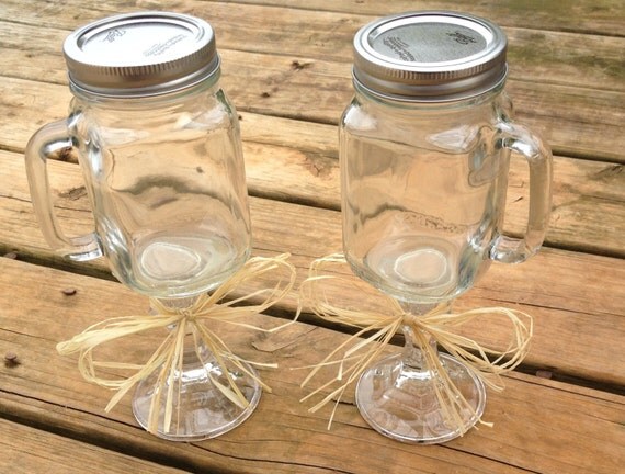 Mason Jar Wine Glasses - Set of 2 - Country Wedding - Rustic Wedding - Western Wedding - His and Hers Champagne Flutes by CountryBarnBabe