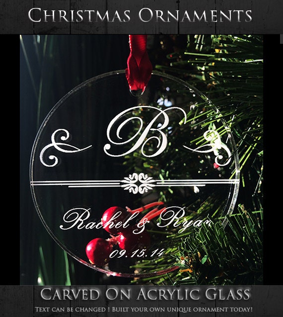 Newlywed Monogram Keepsake Ornament - Personalized Holiday Ornament - Our First Christmas - Just Married - Acrylic Xmas Ornament - SKU#18A by WeddingTreePrints