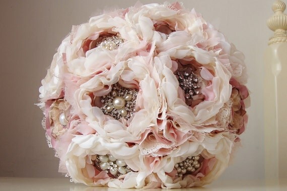Extra Large Wedding Brooch Bouquet Bridal Custom Beaded Bouquet Jewelled Bridesmaids Bouquet Sphere Style Bouquet in Champagne, Tan Ivory ...