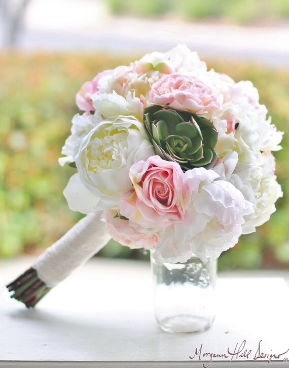 Succulent Bouquet Pink Cream Peony Roes Shabby Chic Wedding (Item Number 140350) NEW ITEM by braggingbags