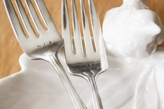 Vintage Wedding Forks - His & Hers - cake forks by LazyLightningArt