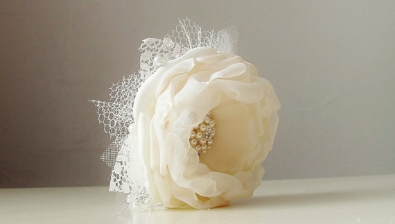 Wrist Corsage, Wedding Corsage, Fabric Flower Corsage, Pearl Bracelet, Ivory Corsage - Made to order by bouquets4love