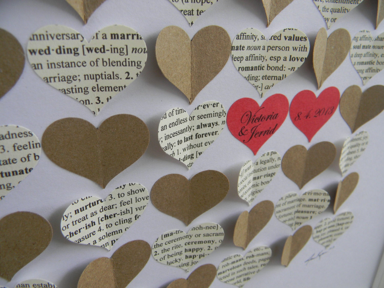 Alternative Wedding Guest Book, 3d Hearts Personalized Guestbook, Dictionary and Kraft Paper Hearts, Choose your wedding colors., by Etsy Store: PrettyProposal