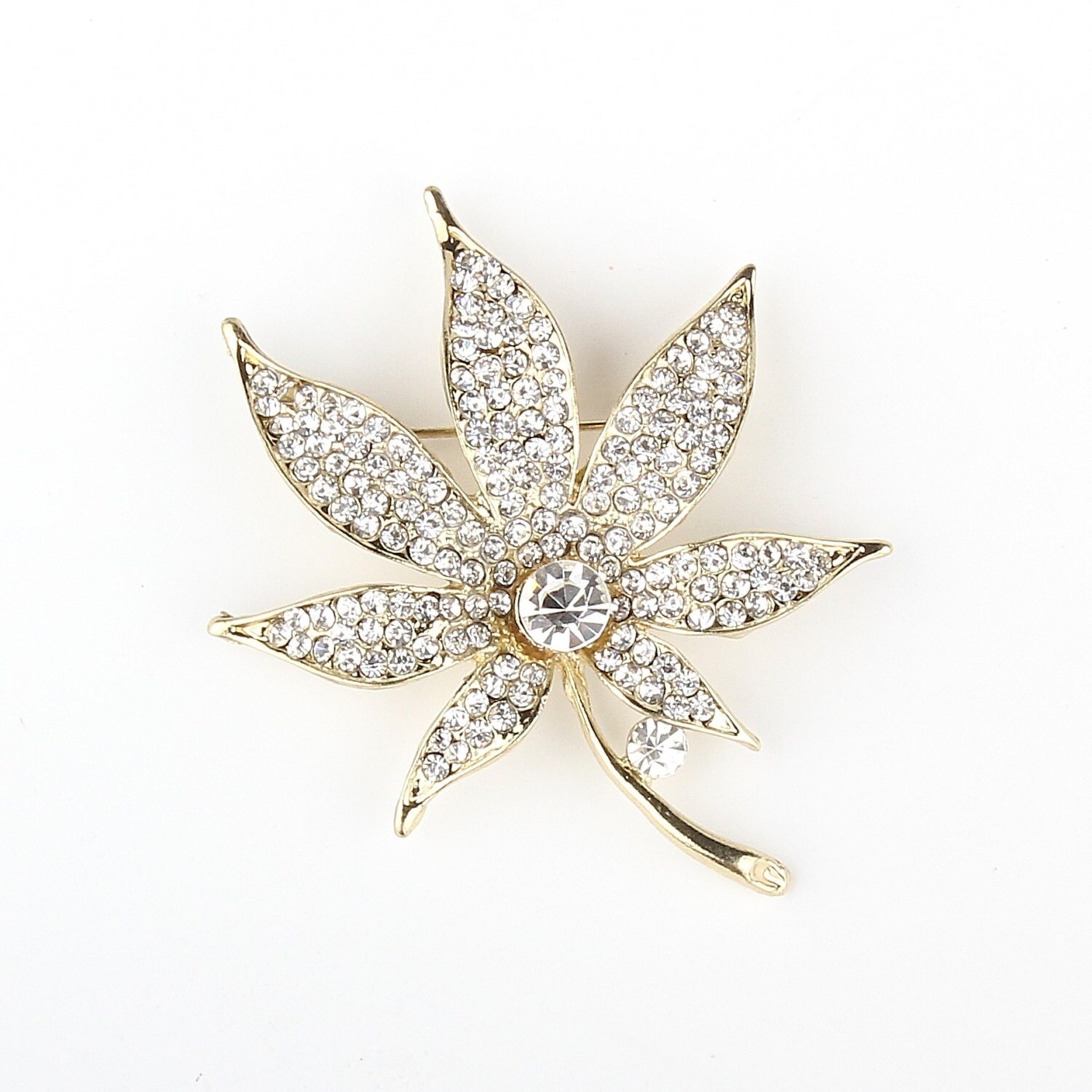 Leaf Rhinestones Gold-Toned Plated Vintage Pin Brooch, DIY Bridal Brooch Bouquet, Bridesmaid Gift, Wedding Accessory